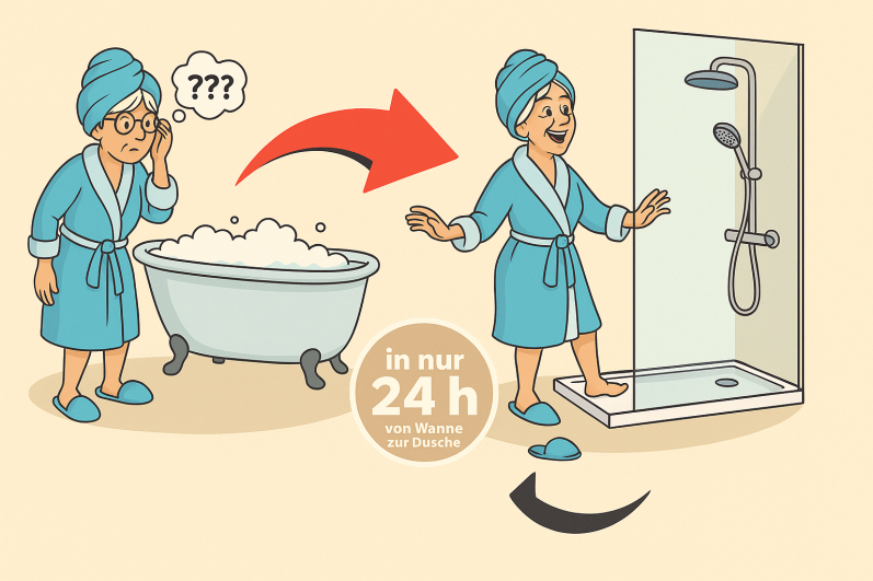 Wir begleiten Sie von der Beratung und Antragstellung bei der Pflegekasse bis zum Tag des Umbaus Ihrer Badewanne oder Dusche.